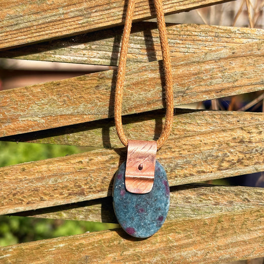 Rustic Ruby in Kyanite Necklace